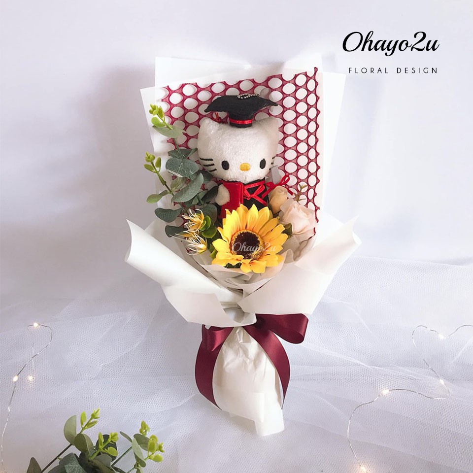 Graduation Hello Kitty Flower Bouquet Convo Bear Artificial 凯蒂猫毕业花束 Shopee Malaysia